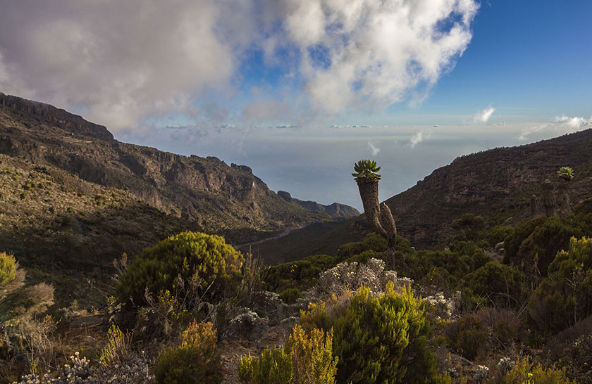 A gentle walk across the plateau leads to Shira 2 camp on moorland meadows by a stream. A variety of walks are available on the plateau making this an excellent acclimatization day. Shira is one of the highest plateaus on Earth.