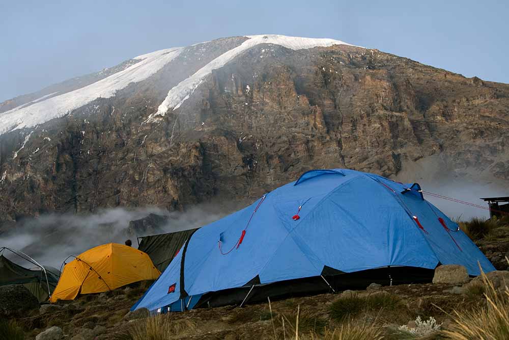 A steep climb up the eastern wall leads us just below the Heim Glacier, where we may have some spectacular views of Kilimanjaro. We then take a steep exit up the Great Barranco Wall, which divides us from the southeastern slopes of Kibo, the trail continues down into the alpine desert of the Karanga Valley, finally we have a steep climb up to Karanga Camp.